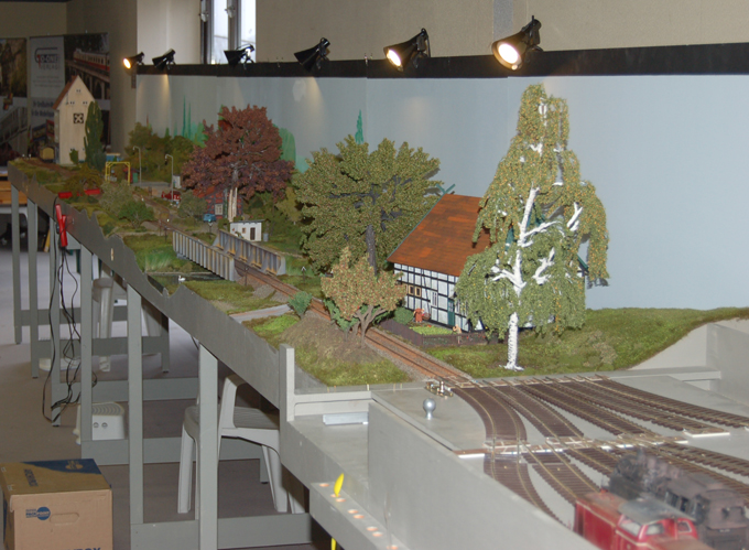 Geschafft! Zum ersten Mal haben wir als Aussteller am 06. und 07.04.2013 unsere Anlage in Buseck präsentiert. Auf besonderen Wunsch des Veranstalters sind wir mit einer kleineren Anlage als ursprünglich geplant angereist. Dennoch konnten wir zwei neue Module vorzeigen. Ein Raiffeisenanschluss macht unseren Durchgangsbahnhof jetzt zum Endbahnhof. Und als besonderes Schmuckstück stellte sich das Streckenmodul mit Münsterländer Bauernkotten heraus.