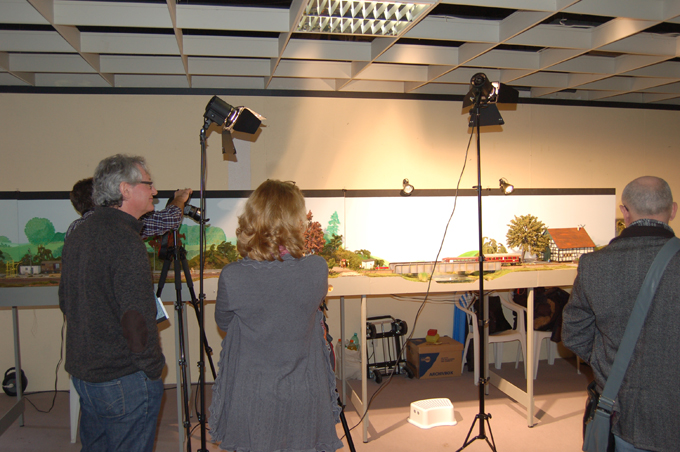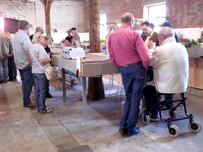 Der Ansturm der Besucher am Samstag Morgen war überwältigend. In den ersten drei Stunden hatten wir Probleme von der Front unserer Anlage Betrieb zu machen. In Zweier- und Dreier-Reihen standen die Besucher vor unserer Anlage, jeder bemüht, den besten Fotostandort zu ergattern. Am Nachmittag beruhigte die Situation sich. So gelang es dann auch, zwischendurch Freunde und Bekannte zu begrüßen und ein paar Worte zu wechseln.